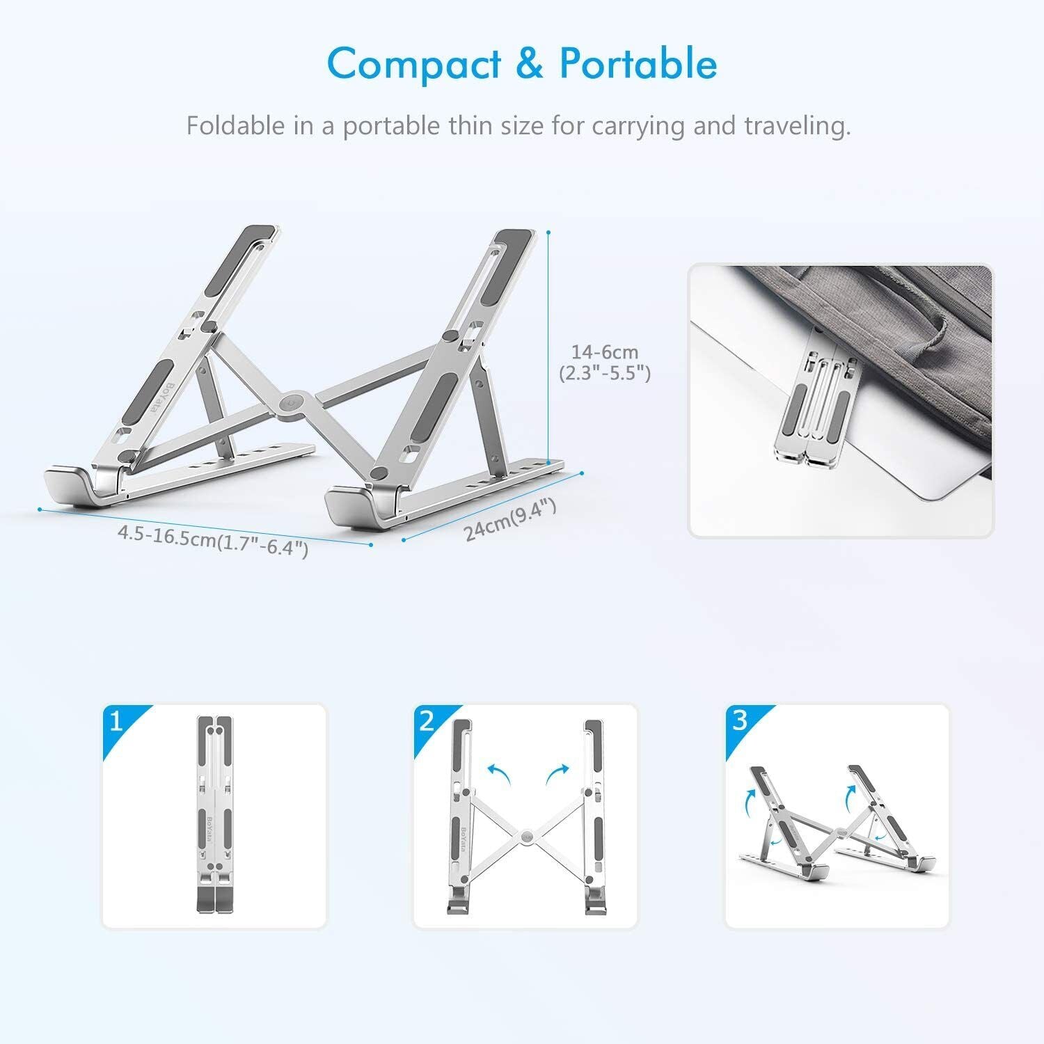 4. [Stability and durability] Made of high quality aluminum alloy to make the laptop lifting board more sturdy; The non-slip pads can keep the laptop lifting board stable and protect the device / desk surface after placement.